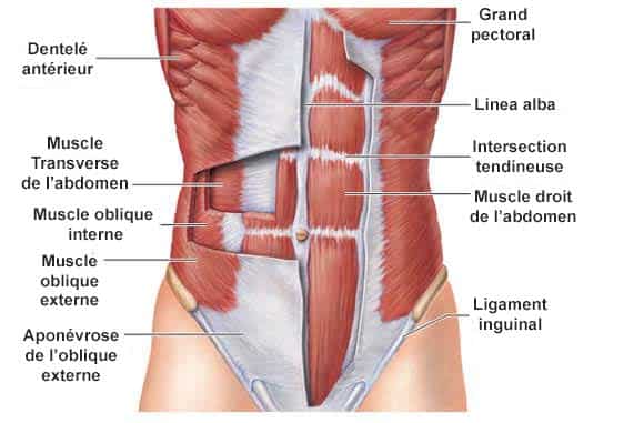 Coté entraînement, renforcez votre muscle transverse (transversus abdominis, voir ci-dessous). Son rôle est le maintien de vos viscères, la réduction du volume abdominal mais aussi de vous faire tousser, vomir et aller aux toilettes.